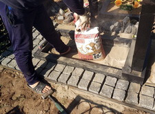 Ремонт покосившего памятника и оформление цветника брусчаткой
